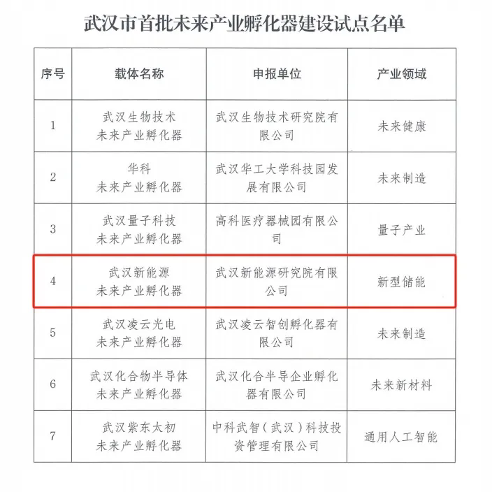 近日,武漢市科創(chuàng)局公示了武漢市首批未來產(chǎn)業(yè)孵化器(空間)建設試點名單,其中未來產(chǎn)業(yè)孵化器7家,未來產(chǎn)業(yè)孵化空間10家。武漢新能源研究院入選武漢市首批未來產(chǎn)業(yè)孵化空間建設試點公示名單。