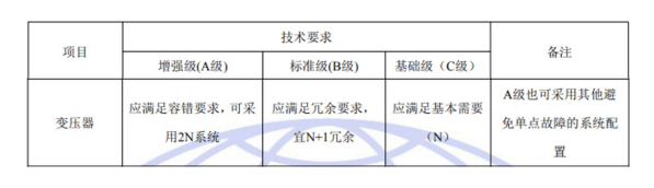 國標GB50174-2017《數(shù)據(jù)中心設(shè)計規(guī)范》中對于A、B、C三級數(shù)據(jù)中心變壓器架構(gòu)的具體要求如下: