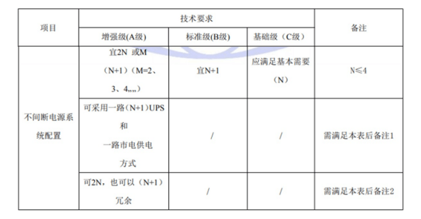 國標GB50174-2017《數(shù)據(jù)中心設(shè)計規(guī)范》中對于A、B、C三級數(shù)據(jù)中心不間斷電源系統(tǒng)架構(gòu)的具體要求如下: