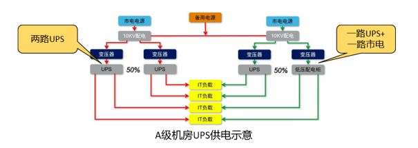 A級數(shù)據(jù)中心同時滿足下列要求時,電子信息設(shè)備的供電可采用不間斷電源系統(tǒng)和市電電源系統(tǒng)相結(jié)合的供電方式。