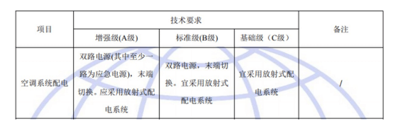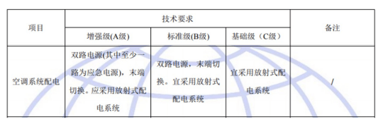 國標GB50174-2017《數(shù)據(jù)中心設(shè)計規(guī)范》中對于A、B、C三級數(shù)據(jù)中心空調(diào)系統(tǒng)配電的具體要求如下: