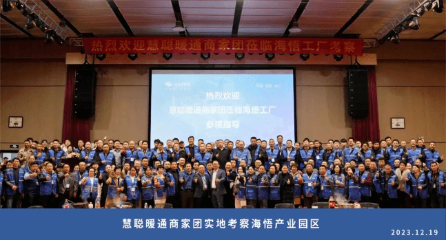 本屆大會新增工廠實地考察環(huán)節(jié),12月19日下午,由全國各地超過150名經銷商、代理商、服務商、采購商組成的慧聰暖通商家團蒞臨海悟產業(yè)園區(qū)考察。
