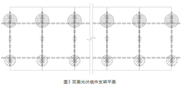 因此,本文針對雙面組件的特點,提出了一種新型的雙面組件支架結(jié)構(gòu)形式,該結(jié)構(gòu)采用常見的光伏支架,具有安裝簡便、成本低的優(yōu)勢,可供分布式光伏發(fā)電項目參考使用。
