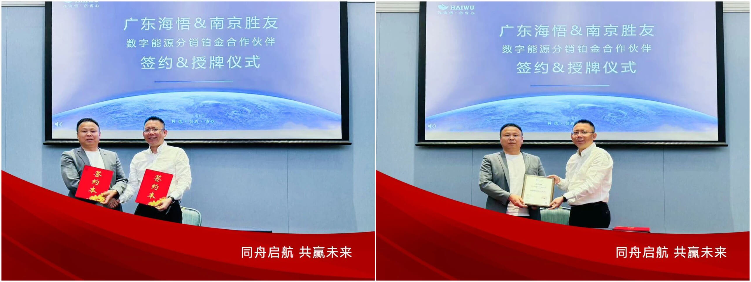 在簽約儀式上,海悟行業(yè)渠道事業(yè)部總經(jīng)理何正煒與南京勝友智能科技有限公司總經(jīng)理姚超分別代表雙方簽訂“海悟數(shù)字能源分銷鉑金伙伴”協(xié)議,并由何總為南京勝友頒發(fā)“海悟數(shù)字能源分銷鉑金合作伙伴”證書(shū)。