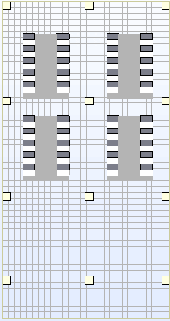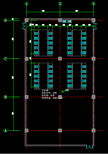 根據(jù)設計方案部署4個相同的雙排微模塊,每個微模塊分別部署10(8+2)臺列間級精密空調(diào),共40(32+8)臺。列間級精密空調(diào)單機冷量:35kW;額定風量:8000m³/h;空調(diào)設備控制22℃送風,35℃回風;空調(diào)背面回風,正面出風;數(shù)量總計40臺。每座微模塊默認位置共10架IT機架,IT機架負載25kW /rack ,機房總計40架IT機架;微模塊封閉冷通道,冷通道寬1.8m。該方案布置方案如下圖: