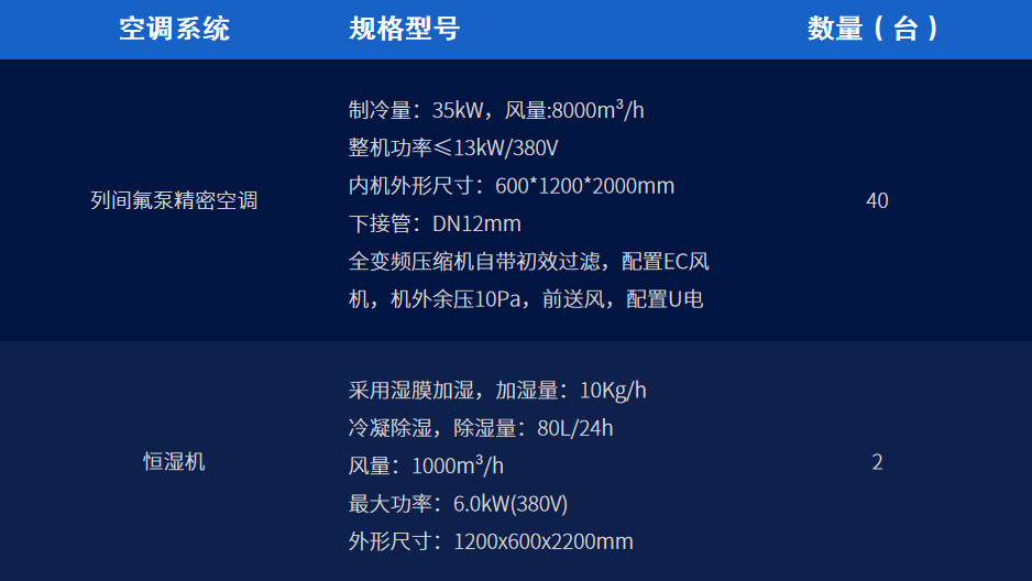 列間級精密空調(diào)方案具體新增空調(diào)設備明細如下: