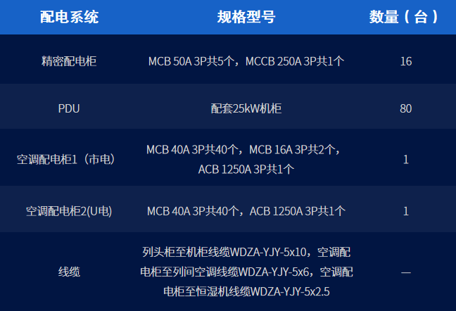 列間級精密空調(diào)方案具體新增配電設備明細如下: