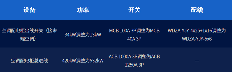 注:空調(diào)專用變壓器、UPS、低壓柜數(shù)量及選型是否調(diào)整,需根據(jù)所帶其他負荷綜合考慮。
