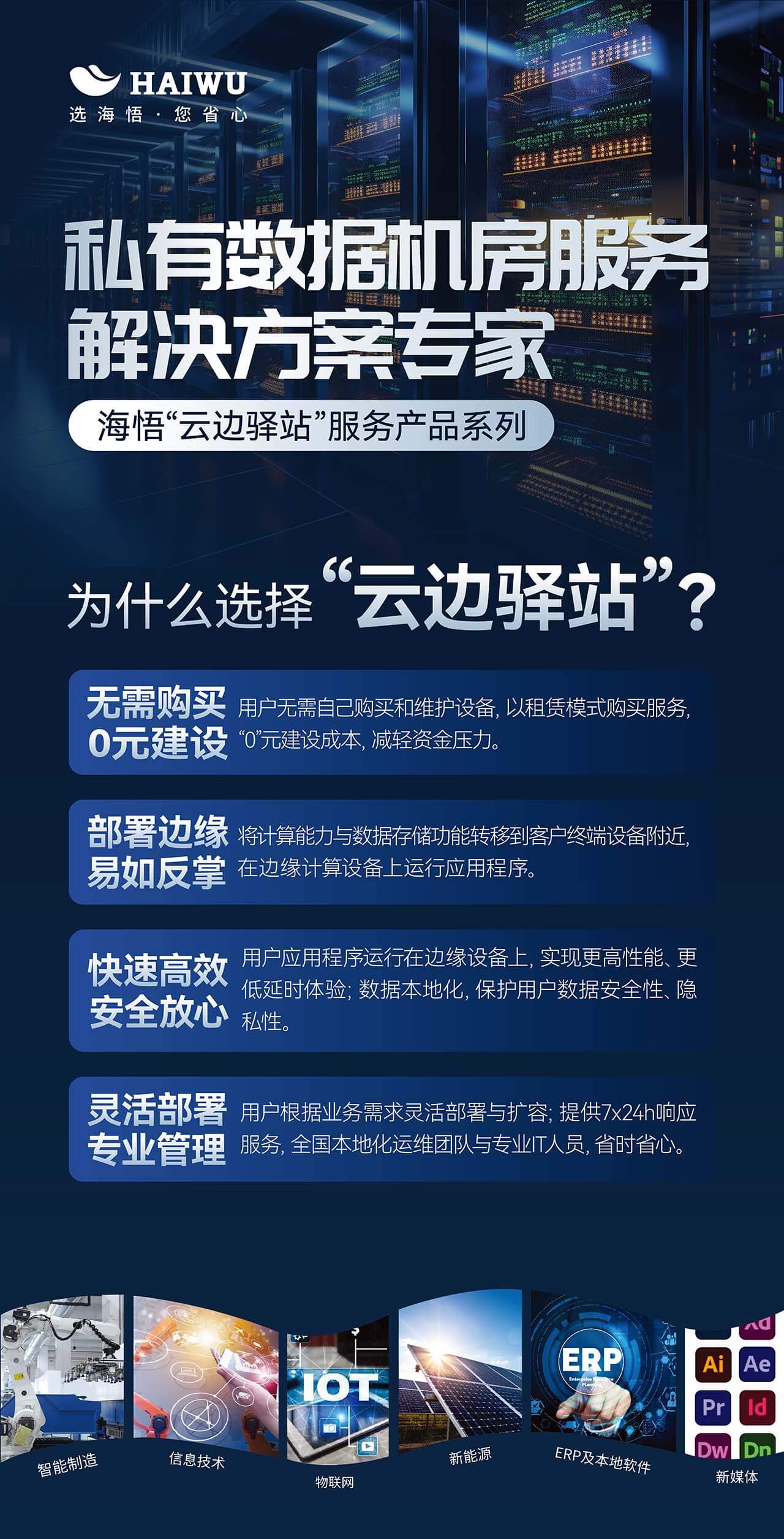 在數(shù)字化轉(zhuǎn)型的浪潮中,企業(yè)數(shù)據(jù)的安全與高效處理成為了核心競(jìng)爭(zhēng)力的重要組成部分。面對(duì)日益增長(zhǎng)的數(shù)據(jù)存儲(chǔ)需求與復(fù)雜的IT管理挑戰(zhàn),海悟云匠心打造“云邊驛站”私有數(shù)據(jù)中心托管服務(wù)解決方案,旨在為企業(yè)提供一站式的本地化算力與數(shù)據(jù)安全存儲(chǔ)方案,讓企業(yè)在享受云端便捷的同時(shí),牢牢把握數(shù)據(jù)主權(quán),專(zhuān)注核心業(yè)務(wù)的發(fā)展。