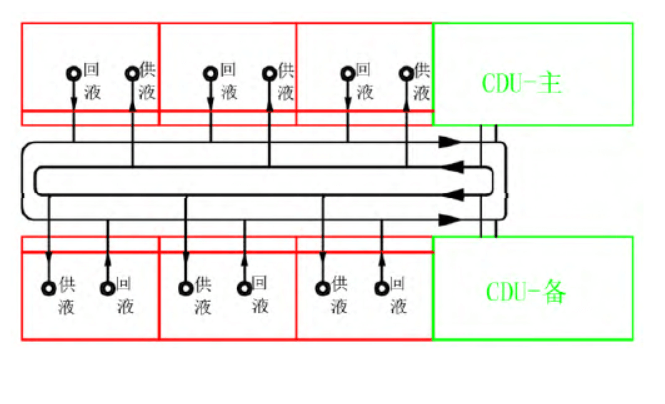 3)將CDU集中布置到一個(gè)區(qū)域或者集中到幾個(gè)有序區(qū)域,使液冷設(shè)備管路和冷卻水管路有明確的物理分區(qū),一方面可以使各功能區(qū)有序布局,另一方面能夠更加簡潔的實(shí)現(xiàn)冷卻水管路和閥門冗余設(shè)計(jì)。