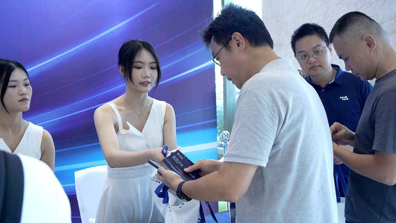 下午兩點,隨著嘉賓們的陸續(xù)抵達,活動正式拉開序幕。簽到區(qū)人頭攢動,每位嘉賓都領(lǐng)取到了精心準備的公司介紹折頁、精美小禮品以及詳盡的數(shù)據(jù)中心解決方案畫冊,現(xiàn)場背景簽名墻更是成為了大家爭相合影留念的熱門地點。展車旁,早已聚集了眾多好奇的參觀者,他們迫不及待地想要一睹海悟集團最新技術(shù)的風采。
