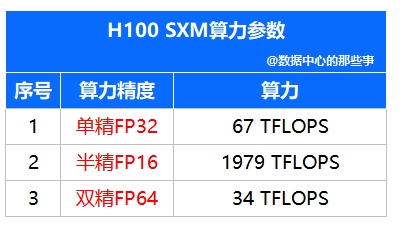 從上公式,計算出本數(shù)據(jù)中心可布置800臺H100 GPU 服務(wù)器。然后計算服務(wù)器的GPU算力。