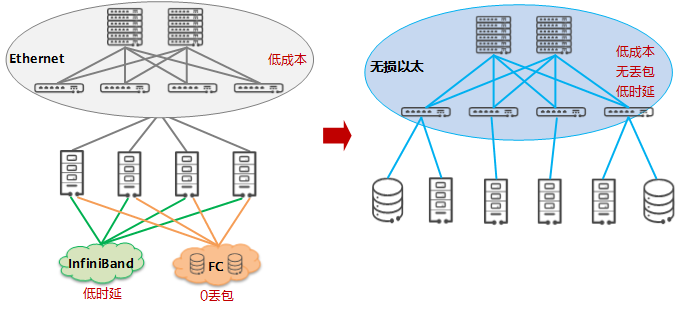 傳統(tǒng)的FC專網(wǎng)和IB專網(wǎng),價格昂貴,生態(tài)封閉,且需要專人運(yùn)維,也不支持SDN,無法滿足云網(wǎng)協(xié)同等自動化部署的訴求。