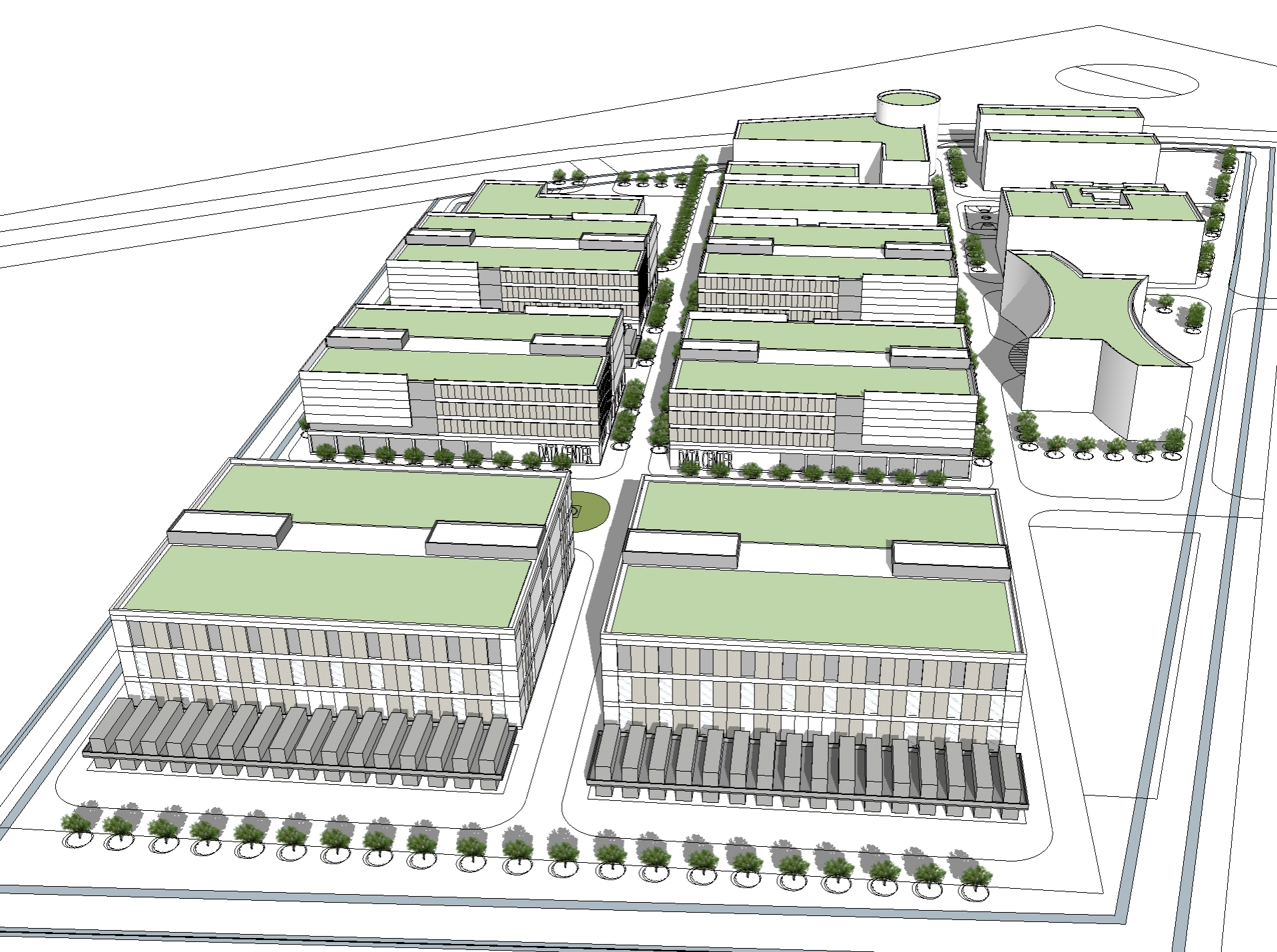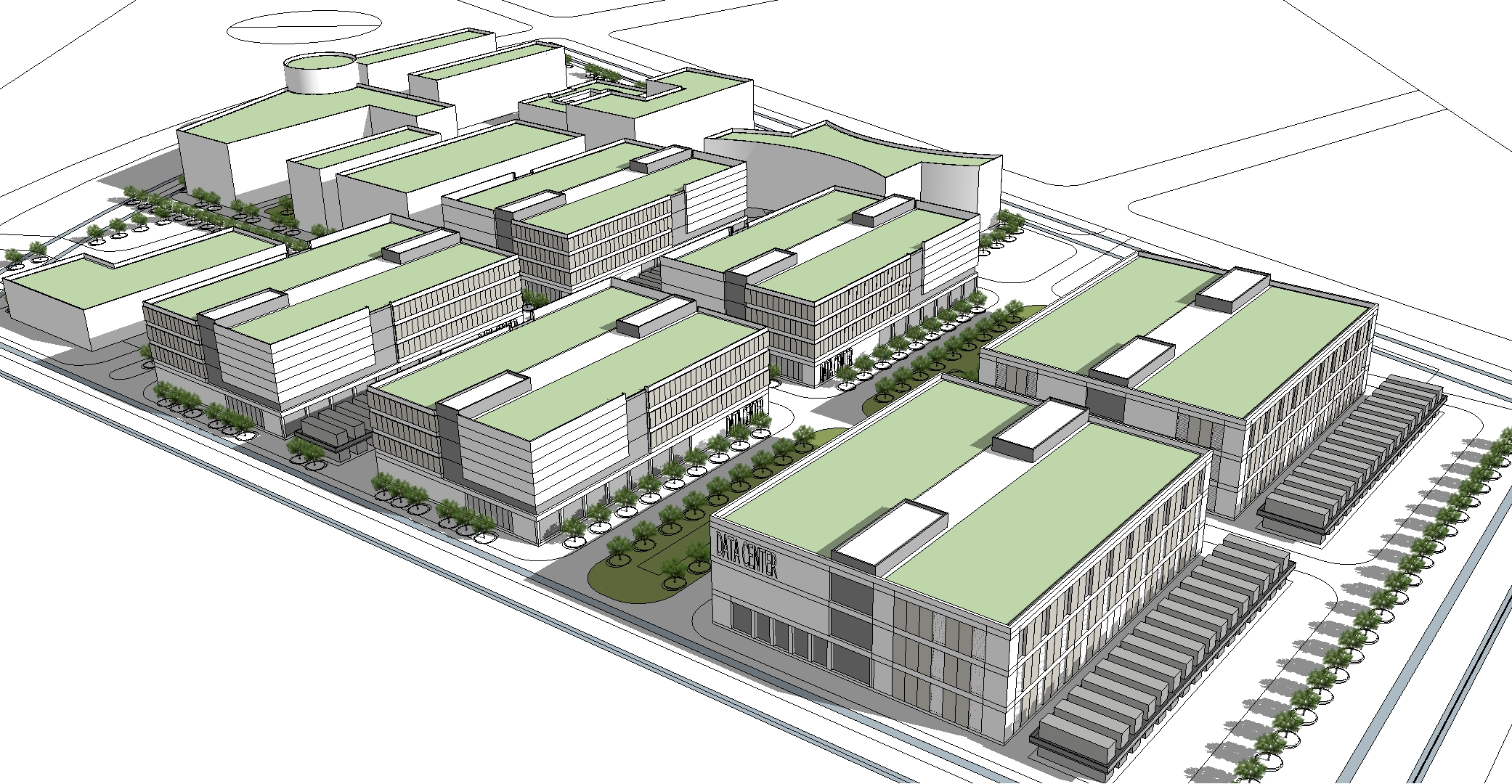 本項目園區(qū)位于南京,總用地面積132397.65m² ,總建筑面積184535.82m²,共設(shè)計6棟數(shù)據(jù)中心(其中4棟采用水冷方案,2棟采用間接蒸發(fā)方案)、2棟宿舍樓、1棟研發(fā)樓、1棟運維管理中心、1棟綜合服務(wù)中心、1棟行政辦公樓、1棟作為220kV變電站。